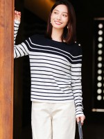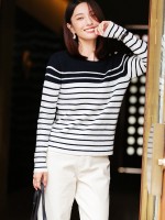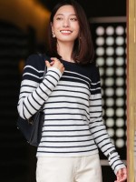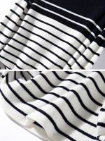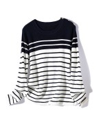 Navy Blue Round Neck Striped Knit Top