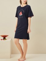 Navy Blue Watermelon Printed Short Sleeves Nightdress