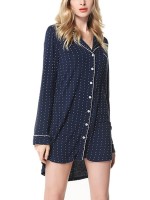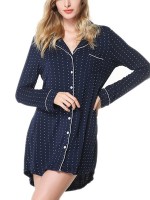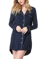 Navy Polka Dots Printed Trimmed Sleepshirt