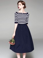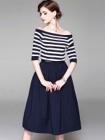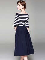 Navy Striped Off the Shoulder Top and Skirt Set
