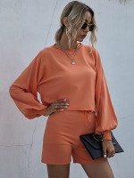 Process: Puff sleeves, Round neck, Mid-waist, Loose fit