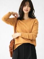Orange Round Neck Loose Solid Color Knit Sweaters