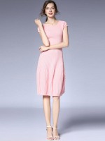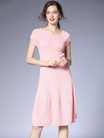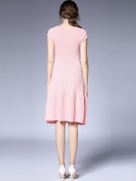 Pink Cap Sleeve Pleated Knit Dress