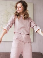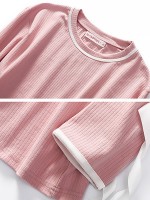 Pink Crew Neck Ribbed Style Loungewear Set