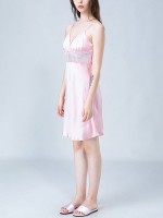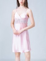 Pink Eyelash Lace Panel Silk Cami Sleep Dress