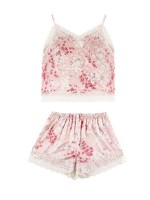 Pink Floral Printed Pajama Set with Lace Detail