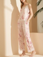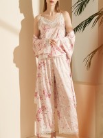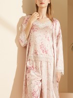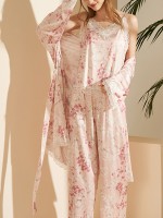 Pink Floral Printed Robe Set with Lace Detail