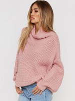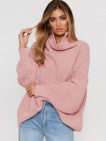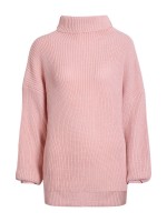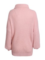 Pink High Collar Long Sleeve Fashionable Knitted Sweater
