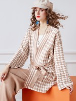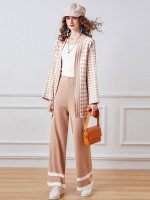 Pink Houndstooth Cardigan and Wide Leg Pants Set