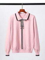 Pink Knit Long Sleeve Polo Top with Skater Skirt