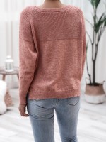 Pink Long Sleeve Stitching Casual Loose Knitted Sweater