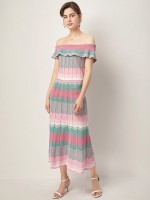 Process: Striped print, Ruffle Detail, Off the shoulder design