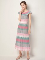 Pink Off the Shoulder Striped Maxi Dress with Ruffle Detail