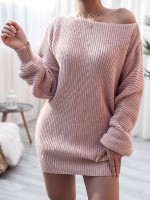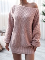 Pink Oversize Long-sleeved Casual Loose Knit Sweater