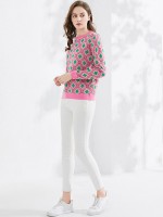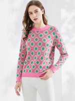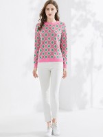 Pink Round Neck Diamond Check Knit Top