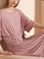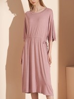 Pink Round Neck Tie Waist Sleepdress