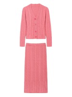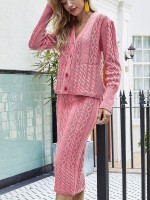 Pink V-neck Cardigans And Bodycon Skirts Sets