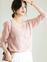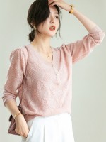Pink V-Neck Hollow-out Knit Top