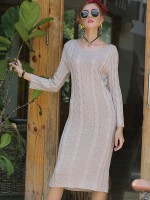 Pink V-neck Ribbed Pattern Maxi Knit Dresses