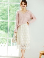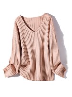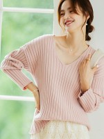 Pink V-neck Ribbed Style Sweater