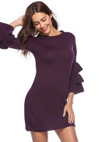 Process: Flared sleeves, Round neck, Solid color, Slim fit