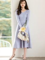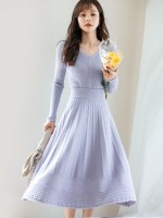 Purple Graceful Knitted Cardigans And Maxi Skirt