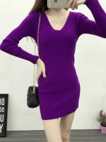 Purple Sexy V-neck Bodycon Midi Knit Dresses