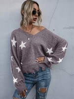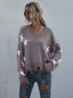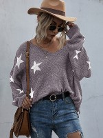 Purple V-neck Printed Stars Pattern Knit Sweaters