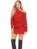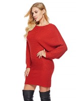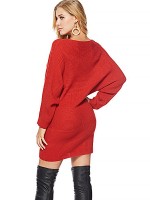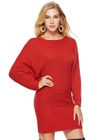 Red Boat Neck Knit Dresses With Cape Sleeves