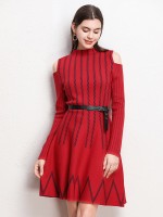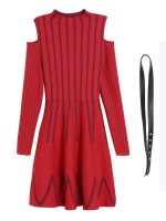 Red Cold Shoulder Striped Midi Dress