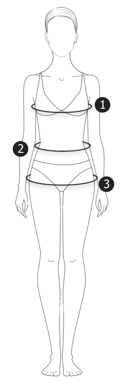 Measure under your arms around the fullest part of your bust. Make sure to keep the tape level! 2Waist