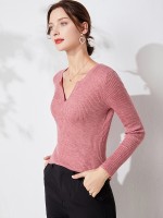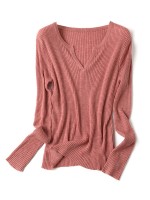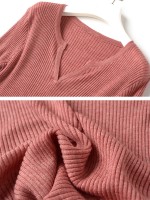 Red Long Sleeve Solid Color Slim Knitted Sweater