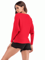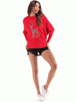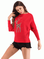 Red Oversize Deer Pattern Crew Neck Knitted Sweater