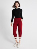 Red Stitching Design Knit Pants