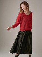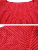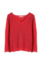 Red V-neck Loose Turtleneck Sweater
