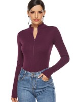 Rose Red Zipper Stand-collar Slim Knit Sweater