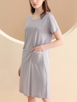 Round Neck Short Sleeved Sleepdress with Pockets