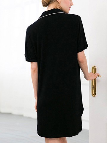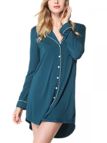 Navy Polka Dots Printed Trimmed Sleepshirt