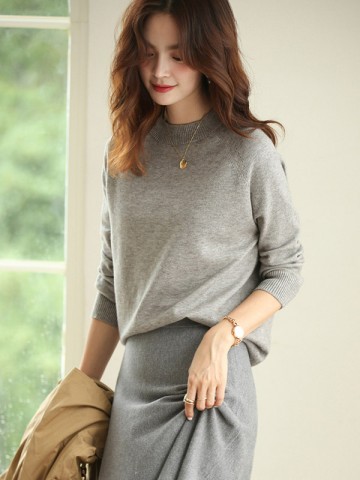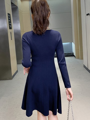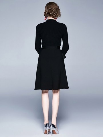 Black V-neck Knitted Sweater and Shift Skirt Sets