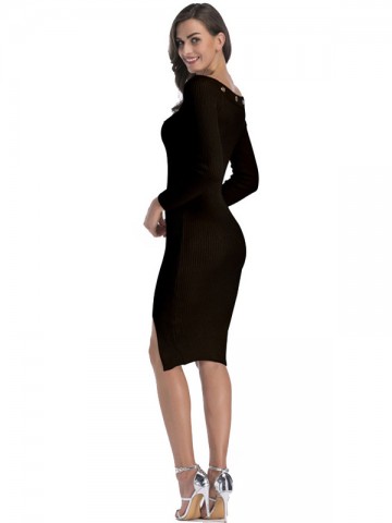 Black Cutout Neckline Bodycon Dress with Rivet Detail