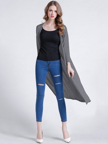 Grey Stitching Design Relaxed Fit Knit Cardigan