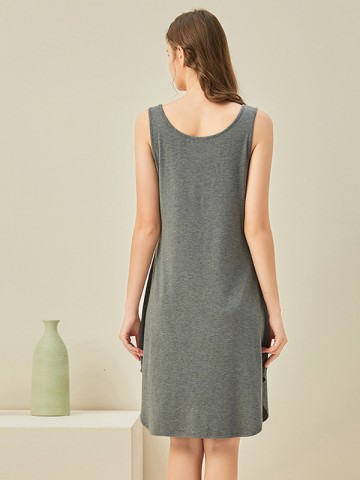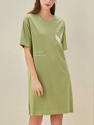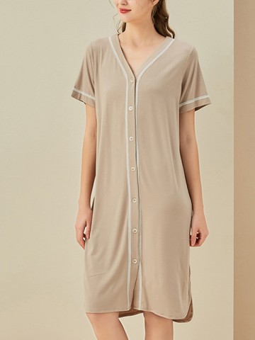 Khaki V-neck Front Button Short Sleeved Sleepdress