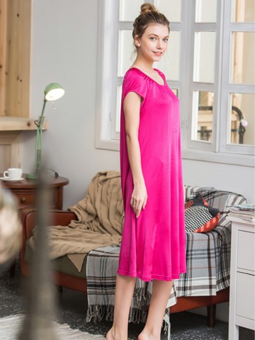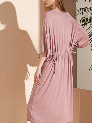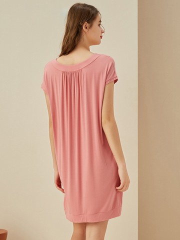 Pink V Neck Short Sleeves Nightdress with Pockets