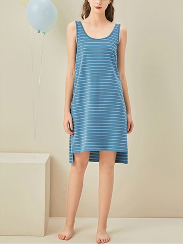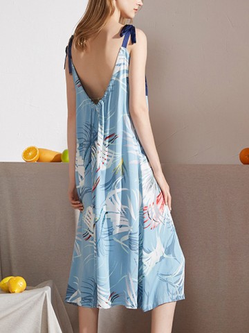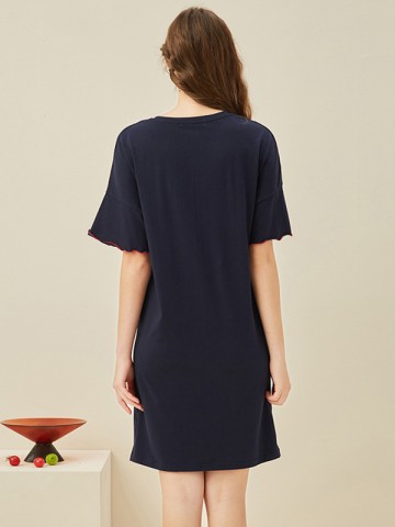 Navy Blue Watermelon Printed Short Sleeves Nightdress