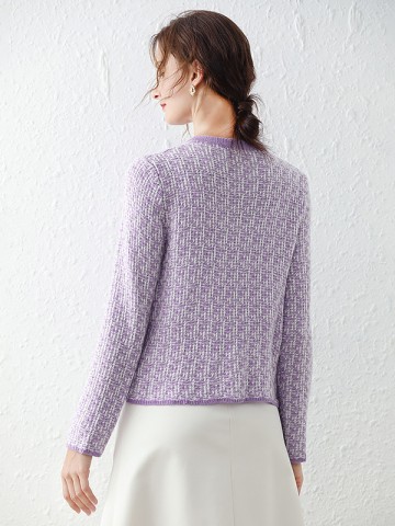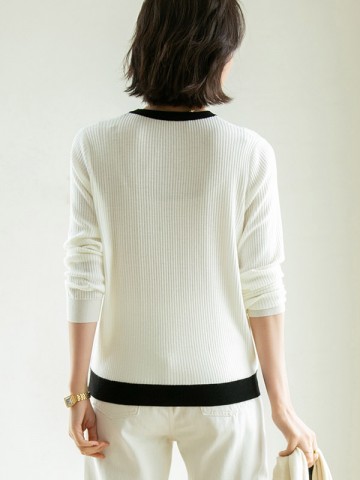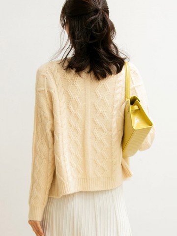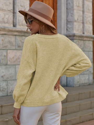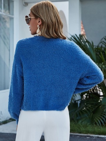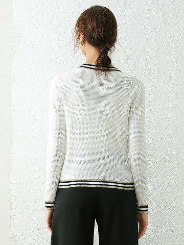 White Texture Design Knit Cardigan With Lantern Sleeve