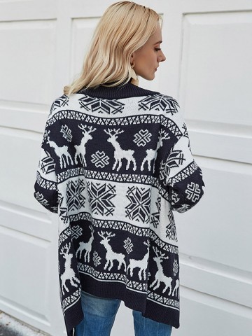 Navy Blue Slouchy Cut Medium Knit Cardigan