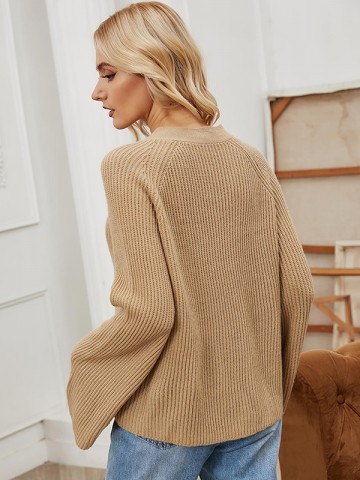 Khaki Oversize Knit Cardigan with Flared Sleeves