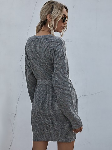 Grey Roll Neck Sweater Dress with Balloon Sleeves