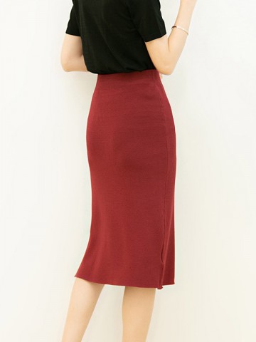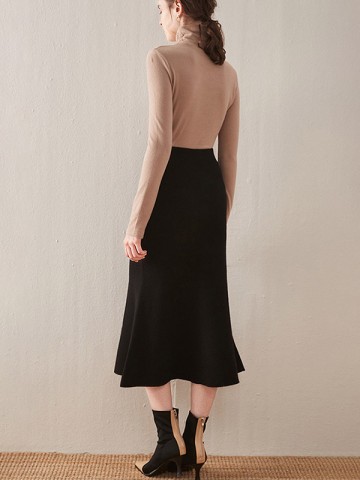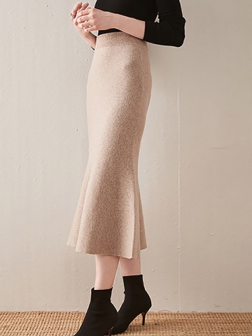 Apricot Midi Knitted Wrap Skirts With Back Split