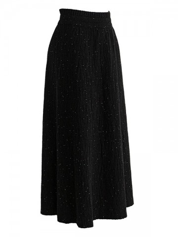 Black Retro A-line Knit Skirts With Geometry Patterns